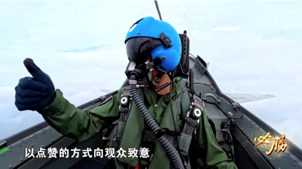 阅兵直播画面中,已经走向深蓝的航母舰载机梯队飞行员,以点赞的方式向观众致意。
